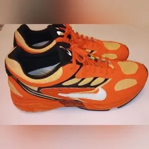 Special Edition Nike Air Zoom Ghost Racers in Orange Peel and Black, size 11 Men's; An Exquisite pair of running or racing shoes. Stand out from the crowd and master your craft with these bright and complex trainers. Don't miss this amazing deal! Check out my other Nike athletic and athleisure soon to come, in all shapes and sizes.