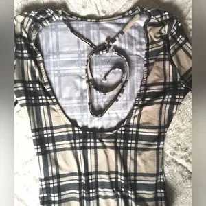 Streetwear Society top with opened back. Size L. Beige color with square motifs. In very good condition.