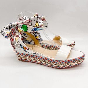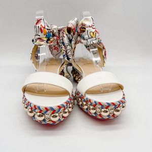 Christian Louboutin Sandals Espadrilles Flats White Leather Bow Made in Spain 39