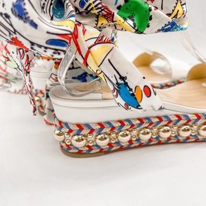 tags: fancy, party, formal, wedding, wedding guest, cocktail, black tie, statement, designer, luxury, gala, night out, date night, dance, Loubs, Loubi, Loubtin, Chrisitian, red bottom, flowers, pink, purple, yellow, white, red, green, blue, studded, stud, vacation, beach, pool, summer, spring, multicolor, lace-up, lace up, flat