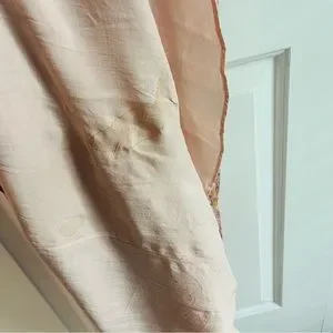 Only worn once, still has tag on it. There is a stain on the lining, but it can’t be seen through dress. A perfect spring dress!