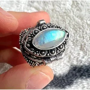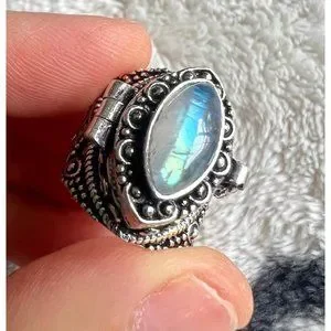 925 Rainbow Flash Moonstone POISON Ring 6, 7, 10