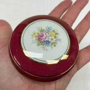 Vintage Limoges France porcelain dresser box with floral design and gold gilding in excellent vintage condition with no chips or cracks