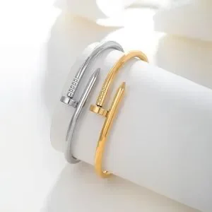 3 Color Gold Silver Rose Classic Brand Nail Open Bracelet Bangle