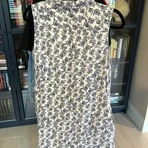 Blue and white linen toile dress