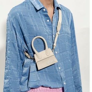Jacquemus Le Chiquito Woven Canvas Top Handle Mini Crossbody Bag Light Greige