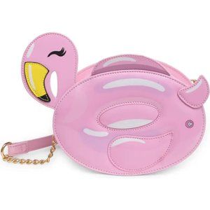 A cute flamingo floaty inspires a handy crossbody bag that is sure to make a statement. Item ships brand new in sealed package with tags. Includes a Flamingo keychain.