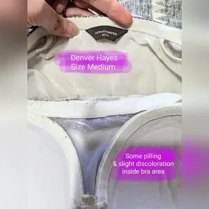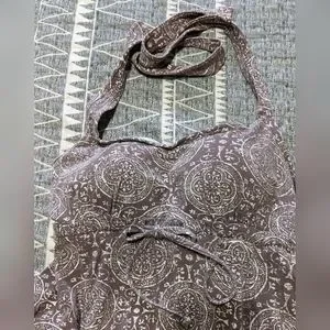 Denver Hayes Midi, beige & white halter dress, Size med, GUC