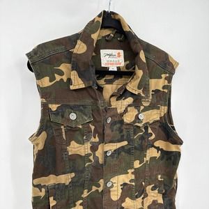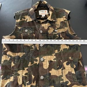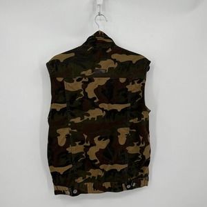 Miskeen Vest Camouflage Sleeveless Collared Multi Pockets Button Down Green M