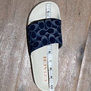 SOLD NEW Authentic Coach Udele Signature Monogram Denim Pool Slides in Denim 10