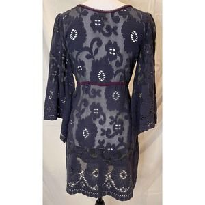 Free People womens Lace Boho Dress Cover Up Size Small zipper blue beach flare.