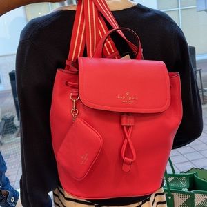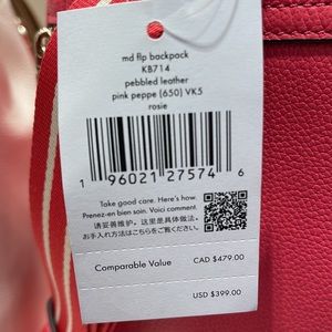 Kate Spade Rosie Medium Flap Backpack K8714 pebbled leather Pink Pepper NWT