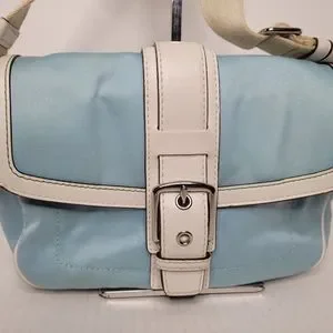 Coach Hampton Blue Soho Twill/Leather Shoulder Bag M0669-P10707. Featuring