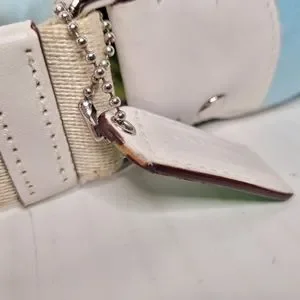 Minor scuffs on white leather edging and by outside snap pocket