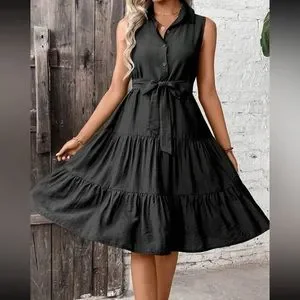 Boho ruffle hem belted shirt dress