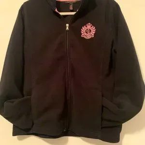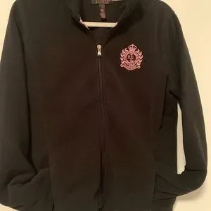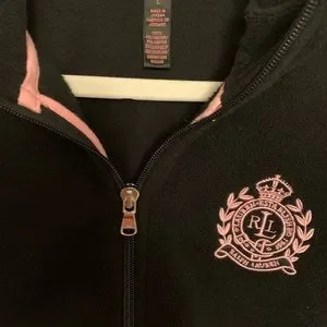 Ralph Lauren Women’s Zip Up Jacket ~ Black with Pink Signature RLL Emblem