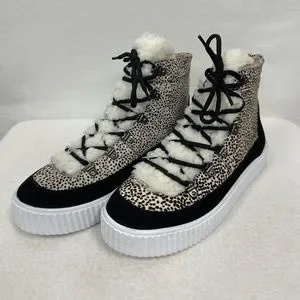 AQUA Womens Mini Pony Dots Beige Faux Fur Platform Hi Top Sneakers sz 8 NWT. Brand new with original packaging