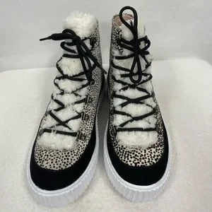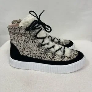 AQUA Womens Mini Pony Dots Beige Faux Fur Platform Hi Top Sneakers sz 8 NWT