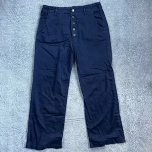 PILCRO Anthropologie Navy Button Fly Wide Leg Pants