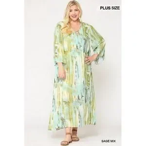 Sage Green Mix Print Tie Dye Multi Color Printed Maxi Dress With Lace Up