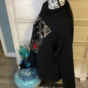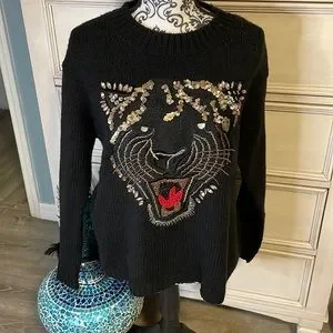 Guess Cyndi bling Tiger Black Sweater - Size Small