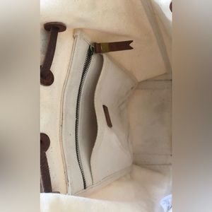 Natural Cream color with Leather tan straps.