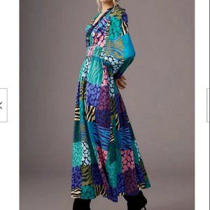 Anthropologie Geisha Designs M NWT Patchwork Maxi Dress Animal Print Long Sleeve