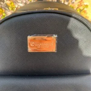 Mini fashion backpack with small bow detail. Faux leather. Gold hardware.