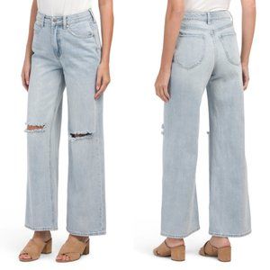 New with tags. People Together Consuming Less (PTCL) wide-leg, high-waisted jeans with ripped knees.