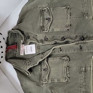 Free People Harley Olive Shirt jacket. Denim feel with lots of pockets. received as a gift just not my style. NWT size Small
