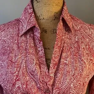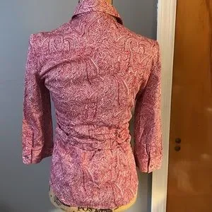 New York & Company Button Up Collared Blouse Quarter Sleeve Cinched Waist Size S