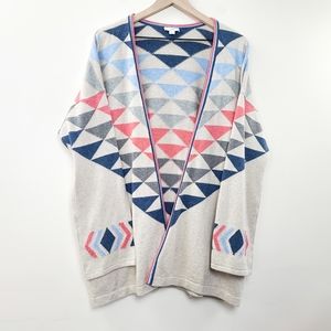 J. Jill Women's Boho Aztec Beige Heather Intarsia Cardigan Size M
