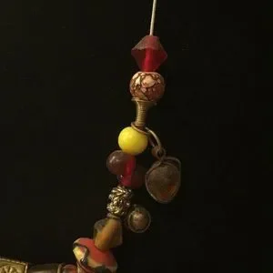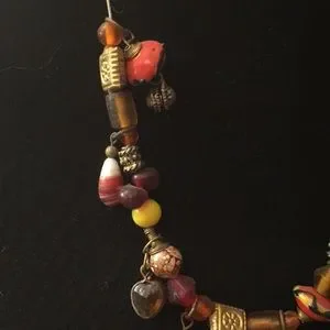 Red, yellow, and brown beaded necklace