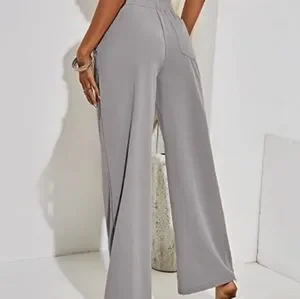 Women's Cotton Linen Pants Loose Elastic Waist Beach Trousers Size Large Gray