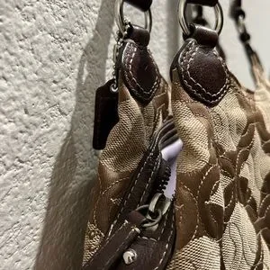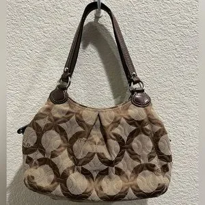 Coach Hand Bag D0982-42949 Brown/Tan with Lilac inside lining Like new