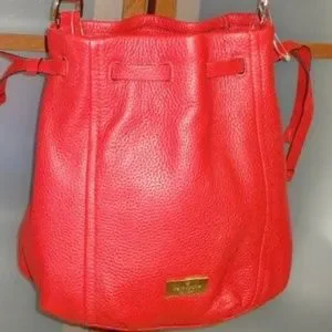 NWOT Kate Spade highland Place Katie Bucket Handbag in Deep Blaze (true red); store display w/only some very fine scratches on the logo plate;
