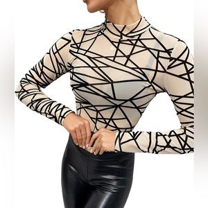 SweatyRocks Women's Mock-Neck Graphic Print Long Sleeve Blouse. Size M