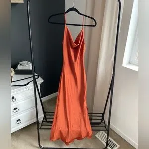 Trendyol side slip midi cowl neck satin dress in cinnamon womens size small