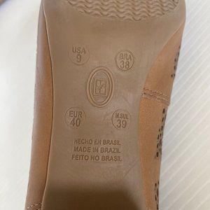 Airflex Women's Size 9 Tan Brown Leather Laser Cut Block Heel Pump Comfort Shoe