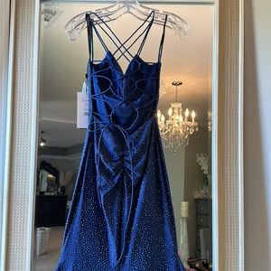 Sherri hill Rhinestone embellished jersey gown deep V neckline and lace up back.
