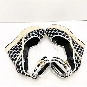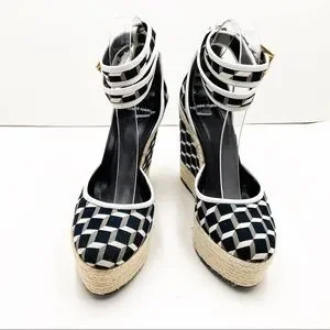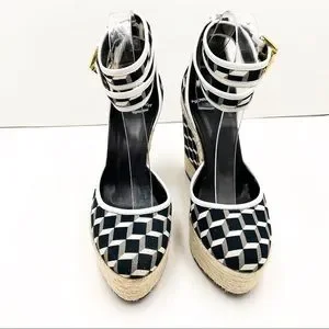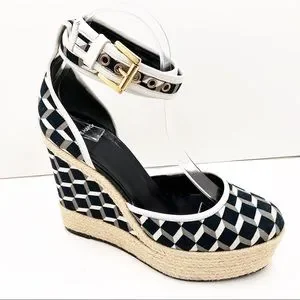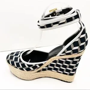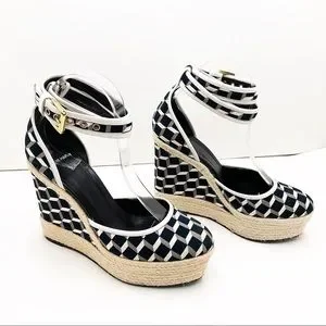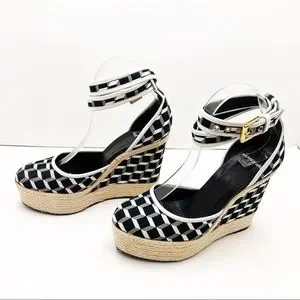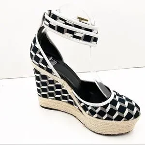 {Pierre Hardy} Canvas & Leather Cubed Print Espadrille Wedges