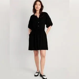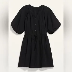 NWT! Black Waist-Defined Puff-Sleeve Mini Poet Dress - Size XL Tall