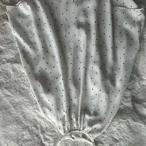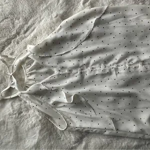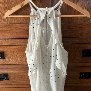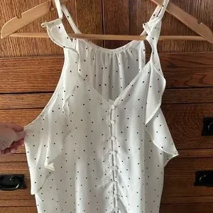 Spaghetti strap dressy tank with ruffles down the side, buttons up the front. With black polkadots. Never worn, excellent condition !