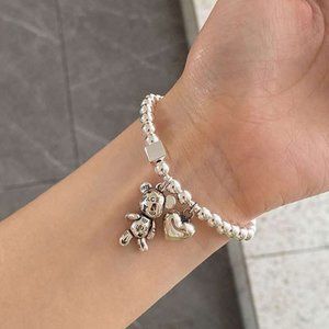 925 Sterling Silver Teddy Bear Bracelet- NEW