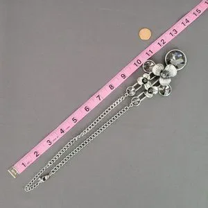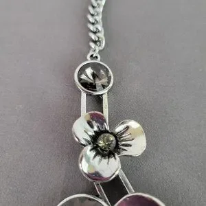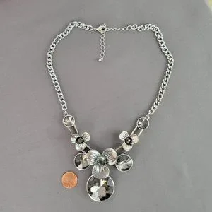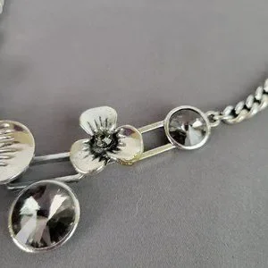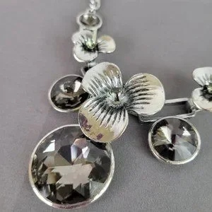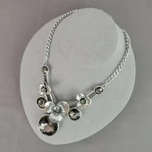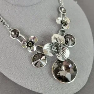 Chunky Silver Flower & Faceted Gray Rhinestone Necklace