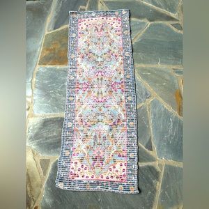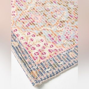 Inspired by overdyed vintage rugs, this handcrafted bath mat lends an artistic touch to your powder room.