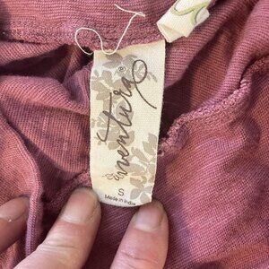 Great color with embroidered floral accents. Stretchy waist. 28". looks like a 10/12 but is labeled Small. 100% organic cotton. Knee Length 23" length. Good condition.