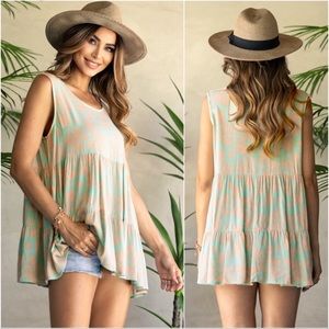 (43)New USA MADE Flowy blue green womens summer light cute trendy tunic top