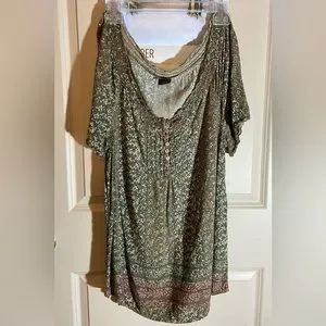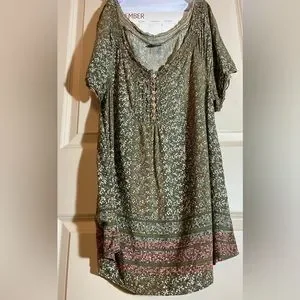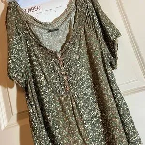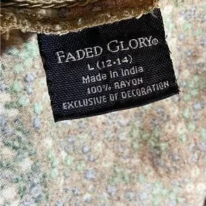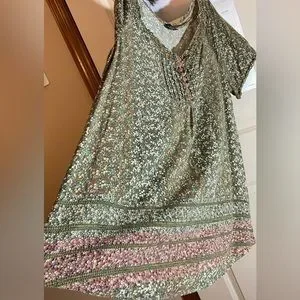Faded glory sz-12/14, pheasant top- subtle colors, faux buttons, pleated bodice