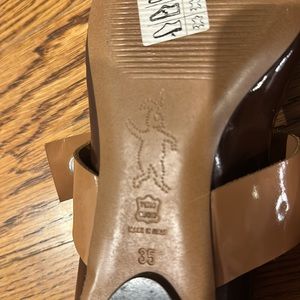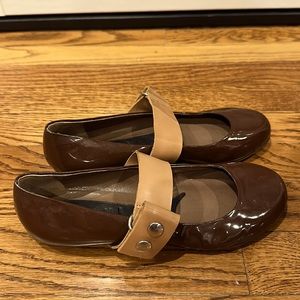 Like new. Marni beige and brown seni-gloss leather Mary Jane flats in Size 35 or 5 US. Worn a few times inside of the house.
